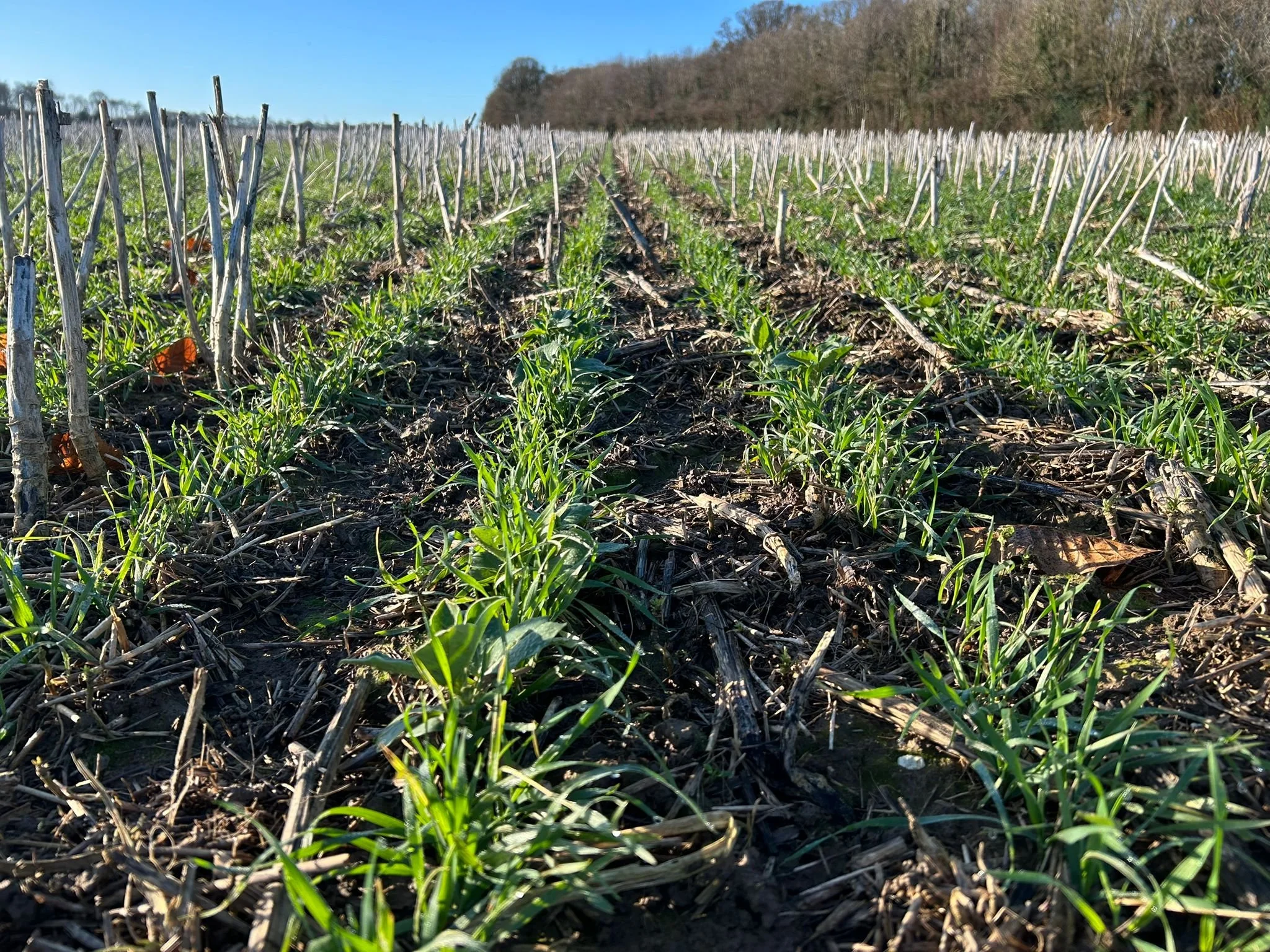 Winter wheats and companion beans were direct-drilled into previous Oilseed Rape stubbles.